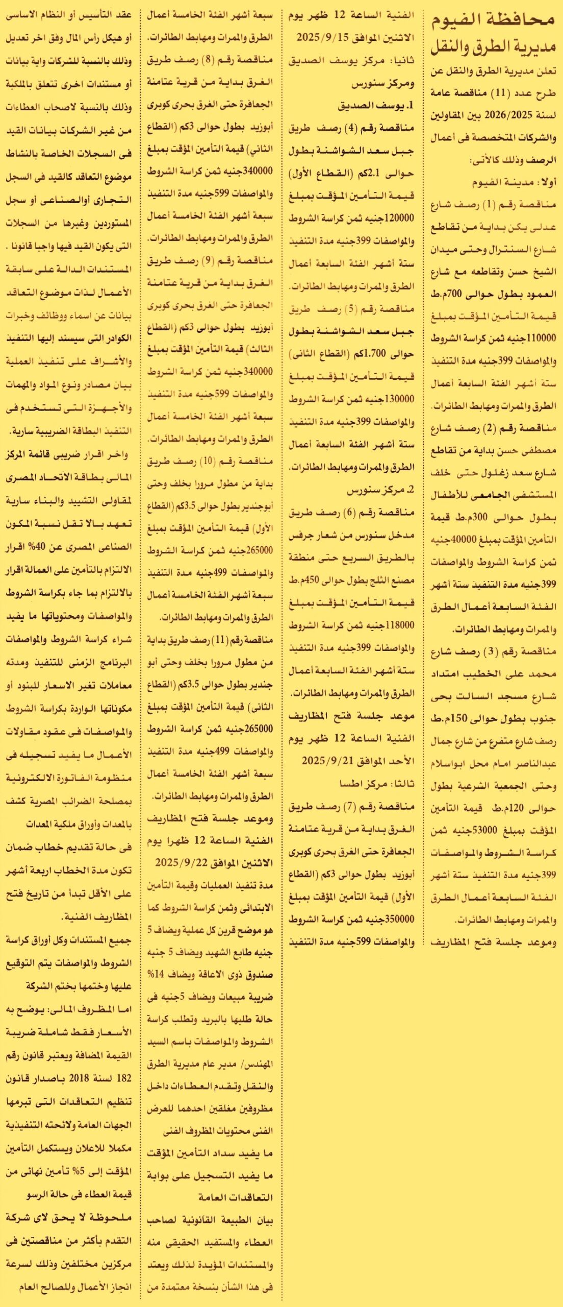 مناقصة عامة رقم 1/2025/2026 لعملية