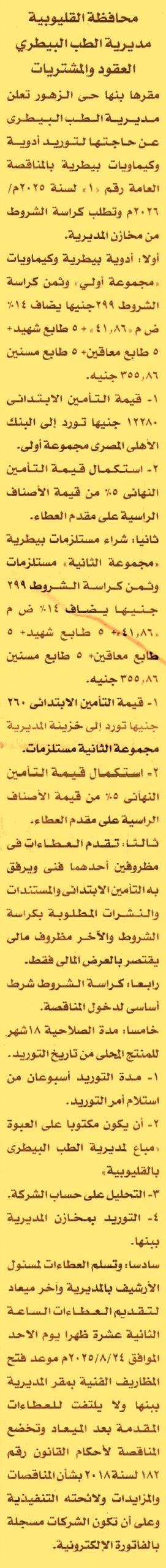 (يورد التأمين إلى البنك الأهلي المصري ويجب أن يكون مكتوب على العبوة “مباع لمديرية الطب البيطري بالقليوبية والتحليل على حساب الشركة)