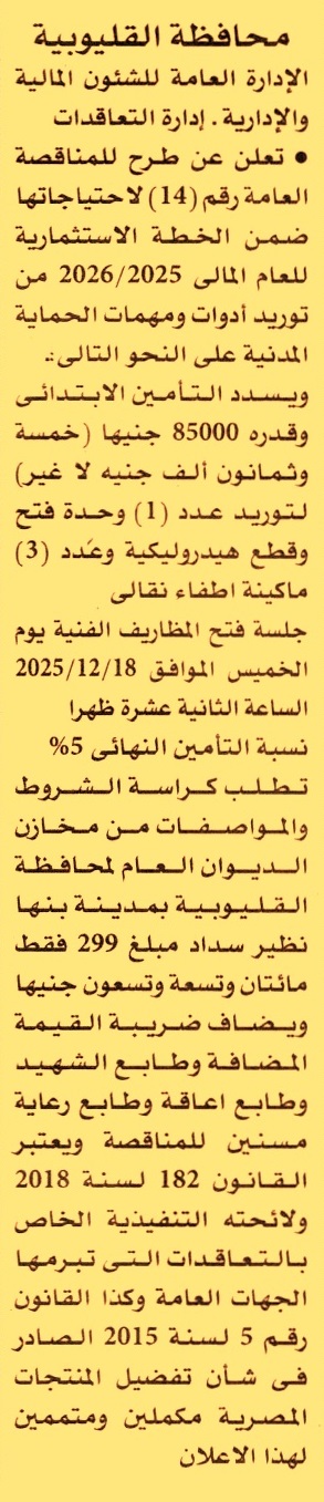 مناقصة عامة رقم 14/2025/2026 لعملية