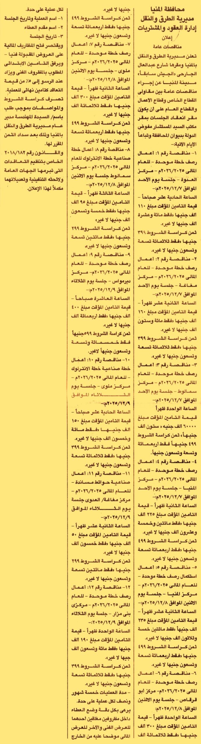 مناقصة عامة رقم 1/2025/2026 لعملية