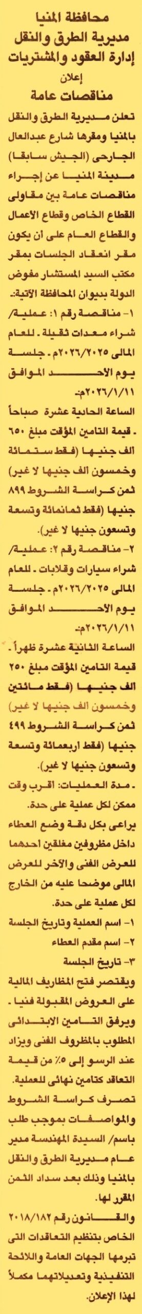 HOT Information مناقصة عامة لعملية توريد معدات ثقيلة للعام المالي 2025/2026 عن جريدة الجمهورية Post navigation محافظة سوهاج مركز شباب الحبانية
