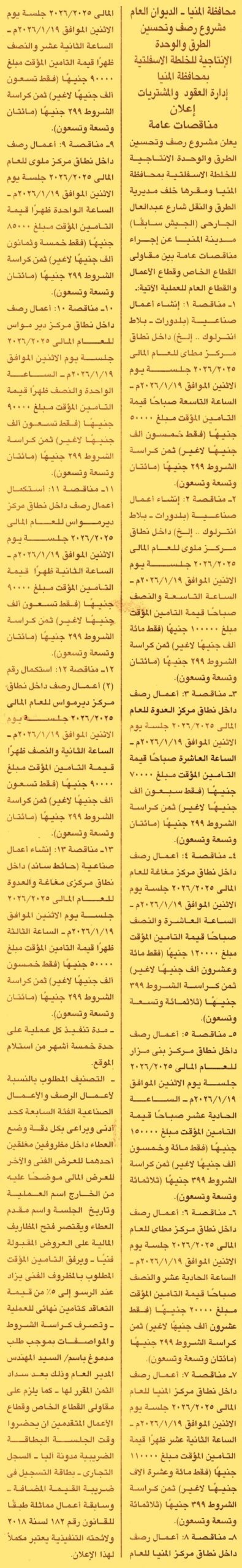 ضمن مشروع رصف وتحسين الطرق والوحدة الإنتاجية للخلطة الأسفلتية بمحافظة المنيا