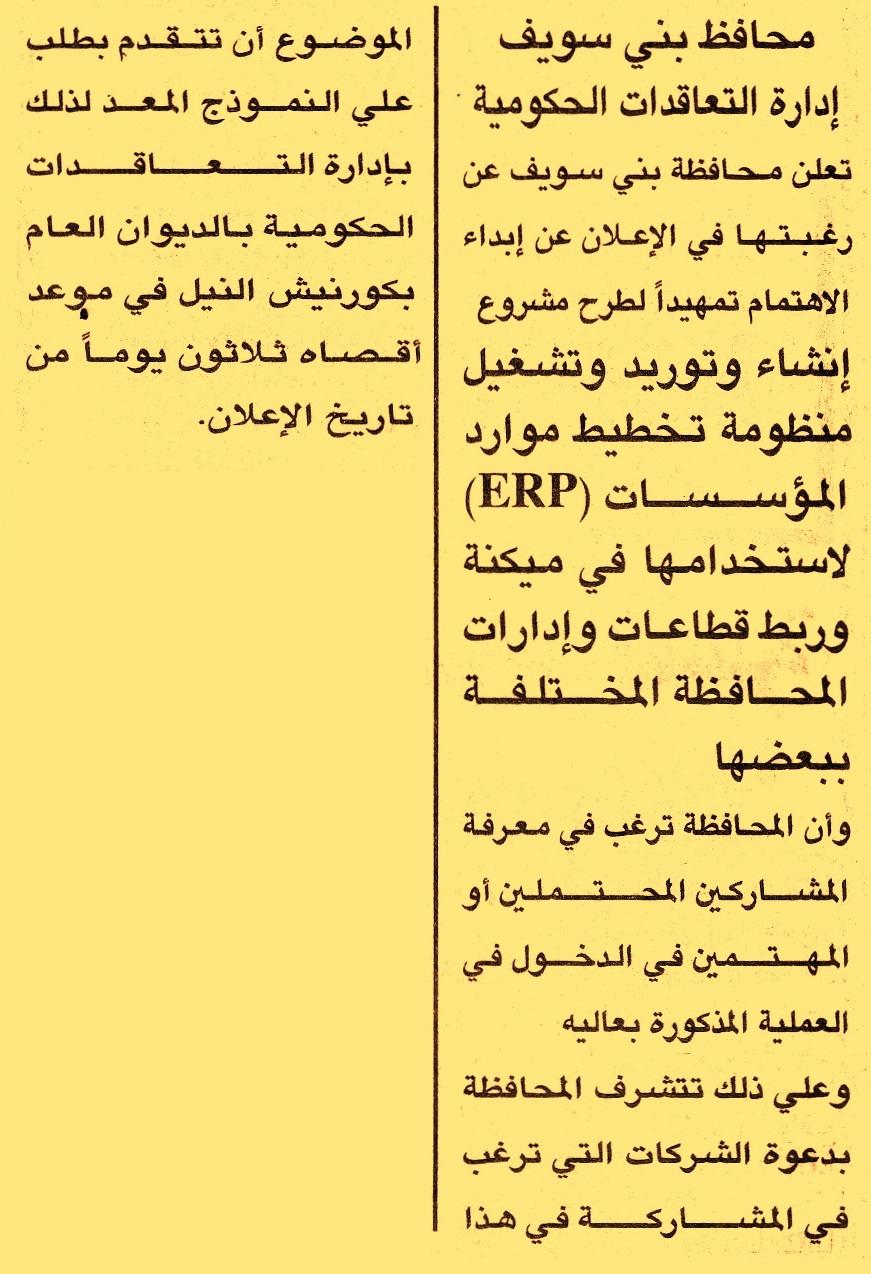 تمهيدا لطرح مشروع إنشاء وتوريد وتشغيل منظومة تخطيط موارد المؤسسات ERP