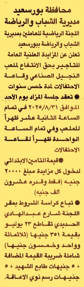 تأجير قاعة الاحتفالات لمدة 5 سنوات