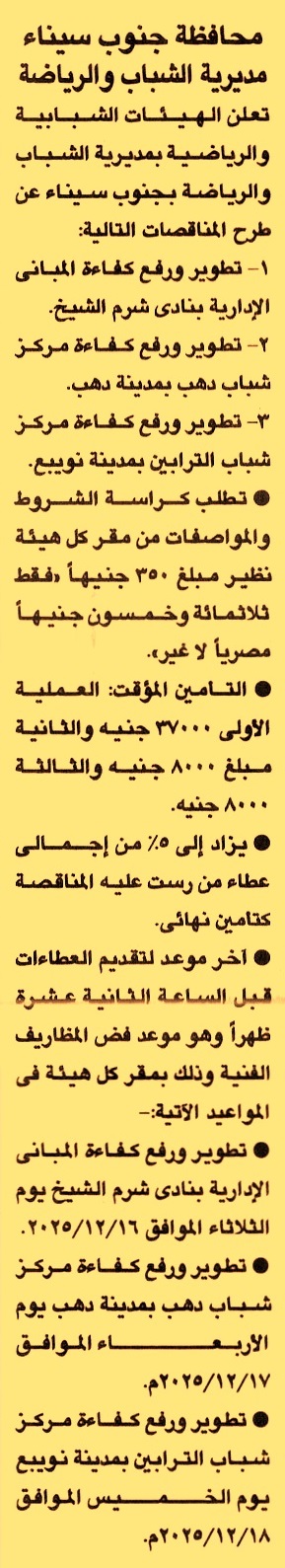 HOT Information مناقصة عامة لعملية تطوير ورفع كفاءة المباني الإدارية بنادي شرم الشيخ عن جريدة الجمهورية Post navigation الإدارة العامة لتطوير وحماية نهر النيل جنوب فرع رشيد بطنطا مركز التنمية الشبابية بشبرا البلد