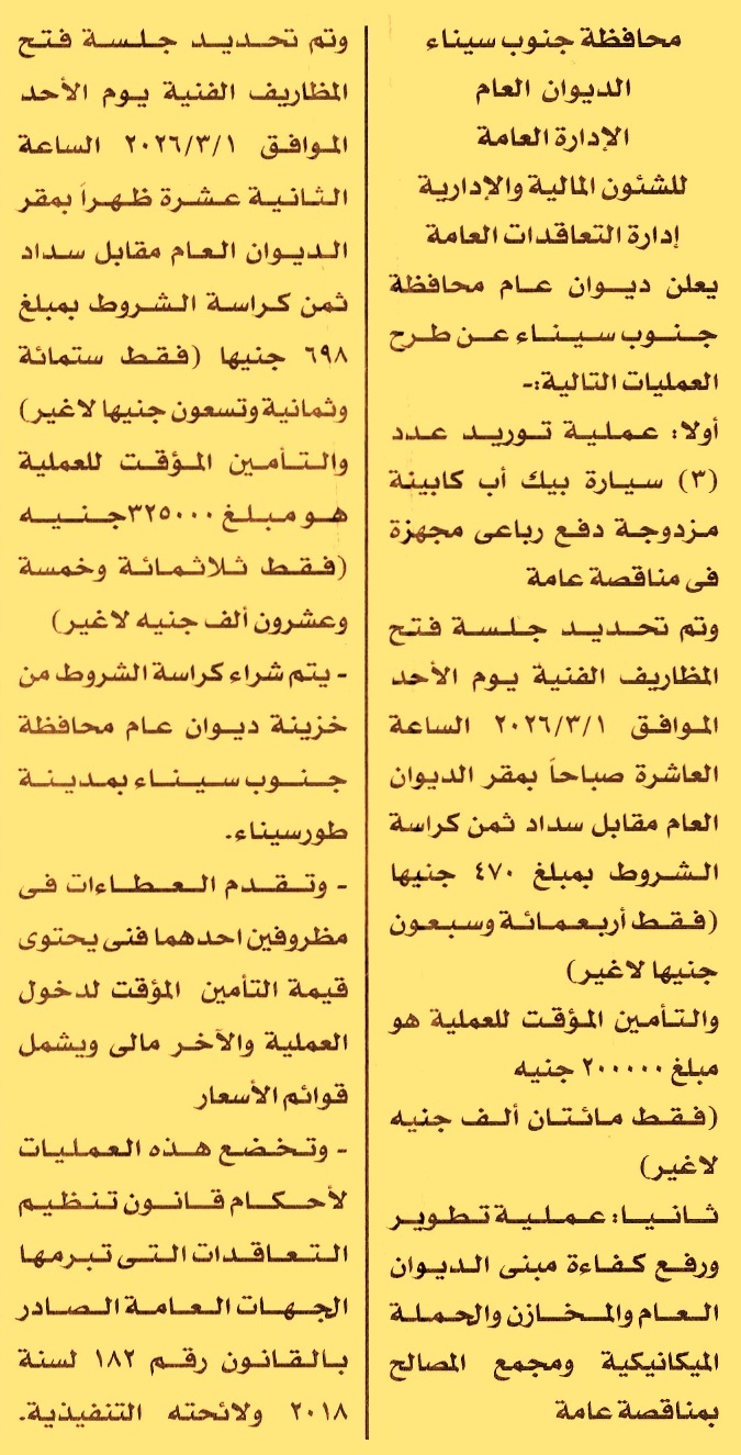 HOT information مناقصة عامة لعملية توريد عدد 3 سيارة بيك أب كابينة مزدوجة دفع رباعي مجهزة عن جريدة الأخبار Post navigation الهيئة العامة لدار الكتب والوثائق القومية جامعة طنطا