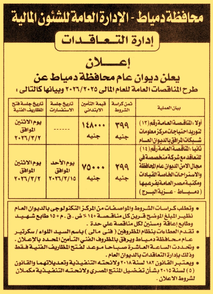 HOT Information مناقصة عامة رقم 13/2025/2026 لعملية توريد احتياجات مركز معلومات شبكات المرافق بالديوان العام عن جريدة الجمهورية Post navigation وزارة الشباب والرياضة جامعة أسوان
