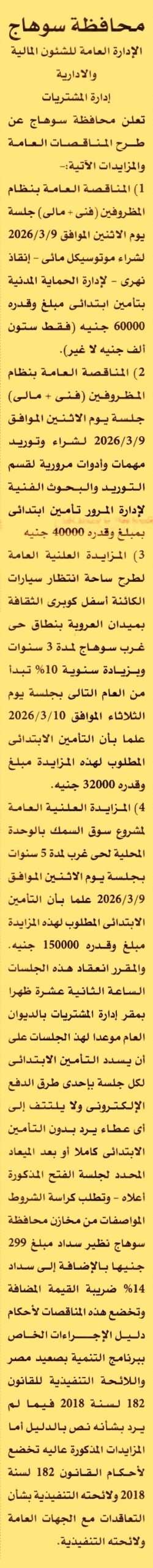 HOT Information مناقصة عامة لعملية توريد موتوسيكل مائي – إنقاذ نهري – لإدارة الحماية المدنية عن جريدة الأهرام Post navigation الهيئة العامة للمستشفيات والمعاهد التعليمية شركة السكر والصناعات التكاملية المصرية