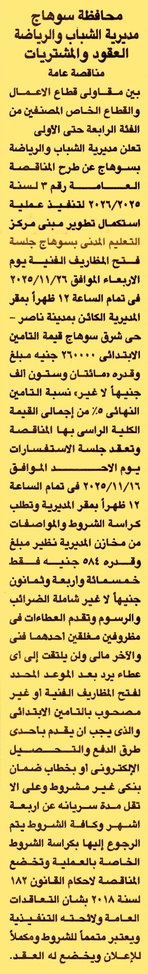 مناقصة عامة رقم /2025/2026 لعملية