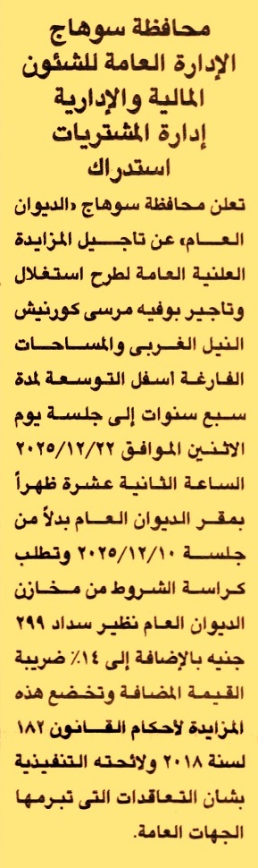 تعلن المحافظة عن تأجيل جلسة المزايدة العلنية العامة لعملية