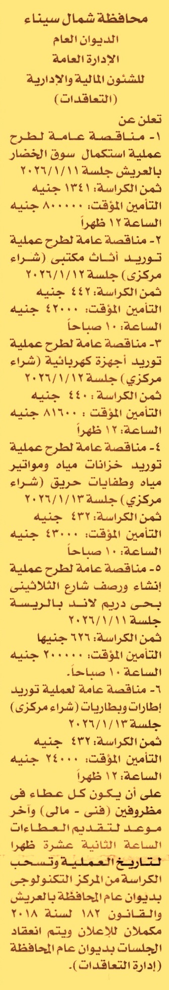 HOT information مناقصة عامة لعملية استكمال سوق الخضار بالعريش عن جريدة الأخبار Post navigation الاتحاد المصري لسباق الحمام محافظة الجيزة