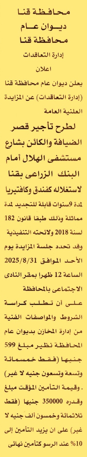 الكائن بشارع مستشفى الهلال – أمام البنك الزراعي – قنا