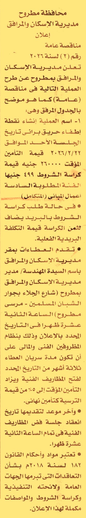 مناقصة عامة رقم 2/2026 لعملية