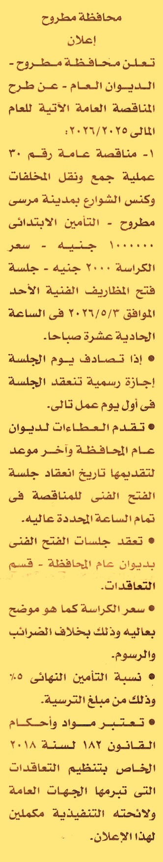 جمع ونقل المخلفات وكنس الشوارع بمدينة مرسى مطروح