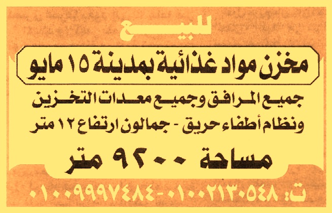 مخزن مواد غذائية بمدينة 15 مايو