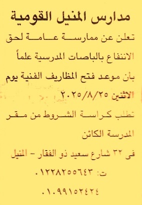 HOT information ممارسة عامة لعملية حق الانتفاع بالباصات المدرسية عن جريدة الجمهورية Post navigation وزارة الشباب والرياضة شركة نجع حمادي للفيبر بورد