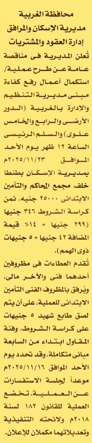 استكمال أعمال رفع كفاءة مبنى مديرية التنظيم والإدارة بالغربية