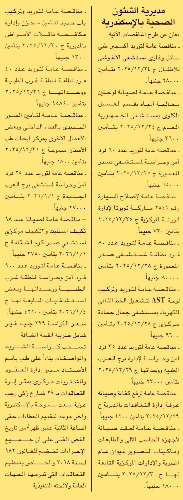 HOT Information مناقصة عامة لعملية توريد أكسجين طبي سائل وغازي لمستشفى الأنفوشي للأطفال عن جريدة الجمهورية Post navigation حي غرب الإسكندرية جهاز تنمية مدينة أخميم الجديد