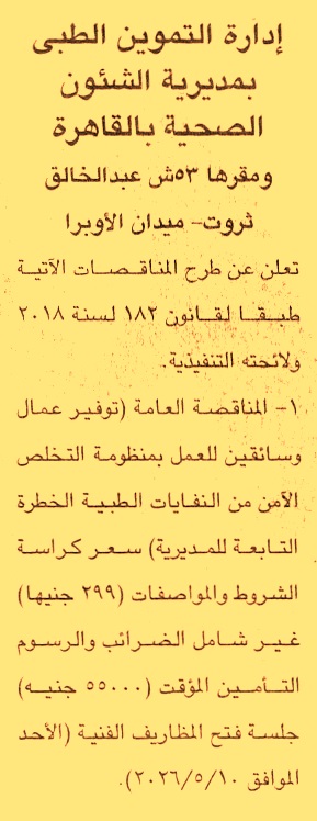 توفير عمال وسائقين للعمل بمنظومة التخلص الأمن من النفايات الطبية الخطرة التابعة للمديرية