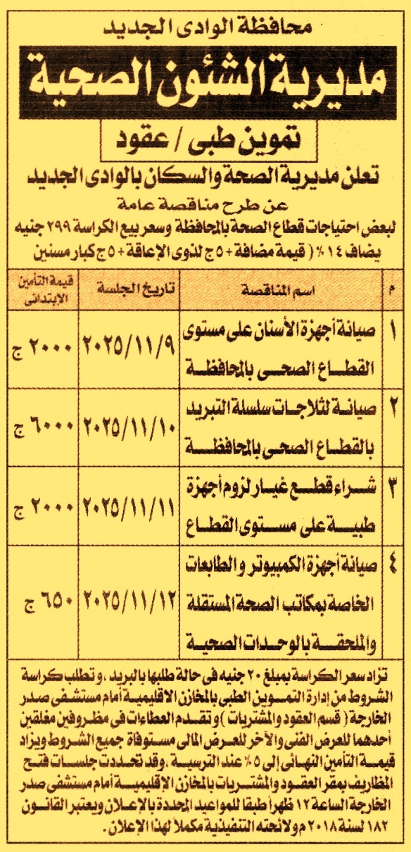 HOT Information مناقصة عامة لعملية صيانة أجهزة الأسنان على مستوى القطاع الصحي بالمحافظة عن جريدة الجمهورية Post navigation وزارة الاتصالات وتكنولوجيا المعلومات اللجنة الرياضية للشباب والرياضة بالمنوفية