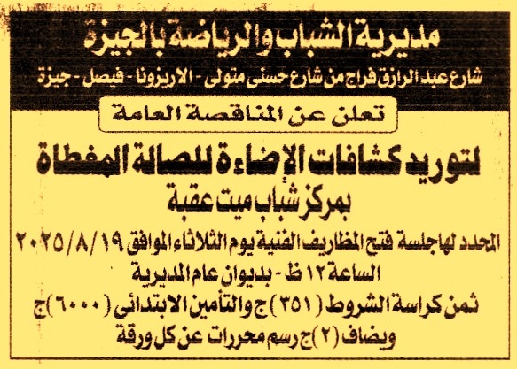 توريد كشافات الإضاءة للصالة المغطاة بمركز شباب ميت عقبة