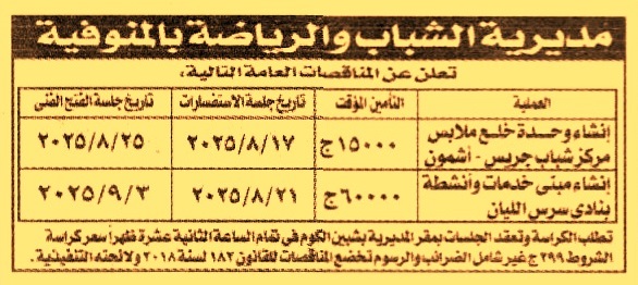 إنشاء وحدة خلع ملابس مركز شباب جريس – أشمون