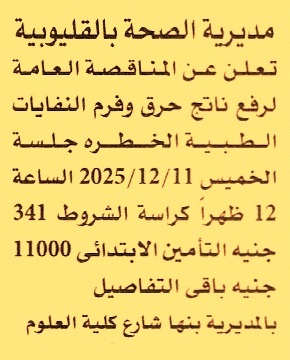HOT Information مناقصة عامة لعملية رفع ناتج حرق وفرم النفايات الطبية الخطرة عن جريدة الأهرام Post navigation الشركة القابضة لمصر للطيران جمعية الصعيد للتربية والتنمية