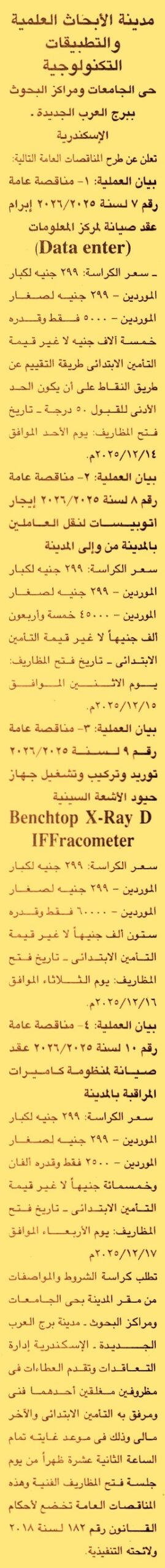 HOT Information مناقصة عامة رقم 7/2025/2026 لعملية إبرام عقد صيانة لمركز المعلومات (التقييم بنظام النقاط بحد أدنى 50 درجة للقبول) عن جريدة الجمهورية Post navigation مؤسسة مشوار التنموية جهاز تنمية مدينة 6 أكتوبر الجديدة