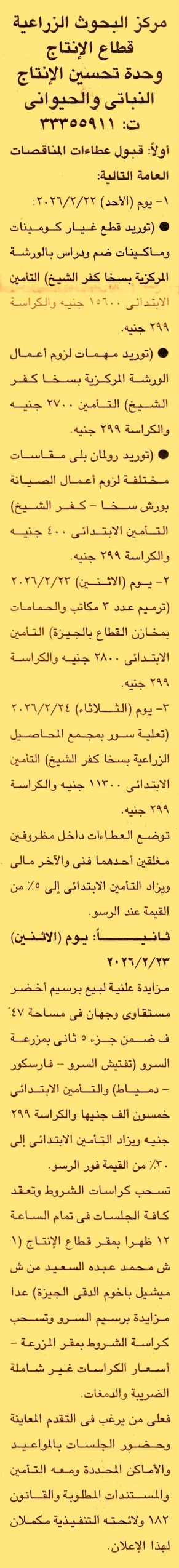 توريد قطع غيار كومينات وماكينات ضم ودراس بالورشة المركزية بسخا – كفر الشيخ