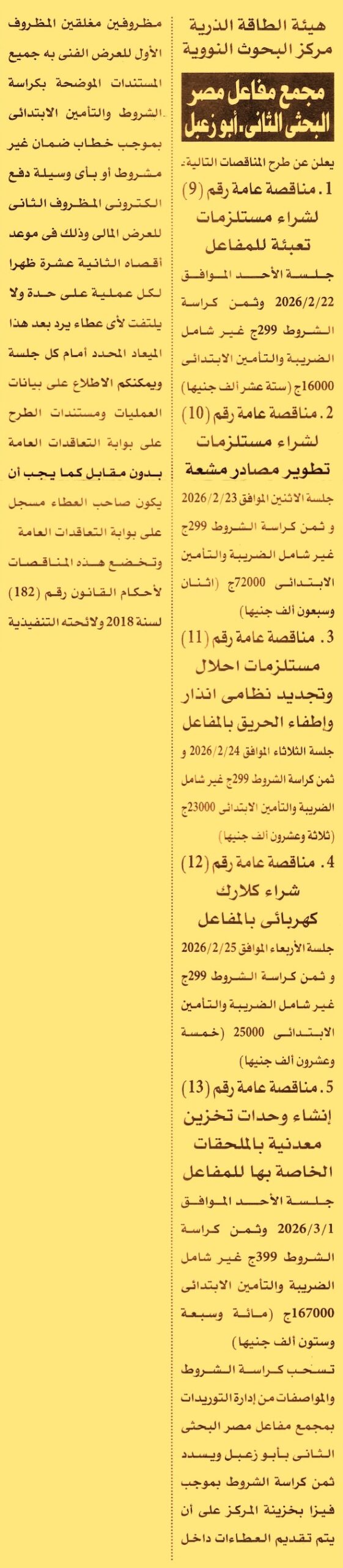 مناقصة عامة رقم 9 لعملية