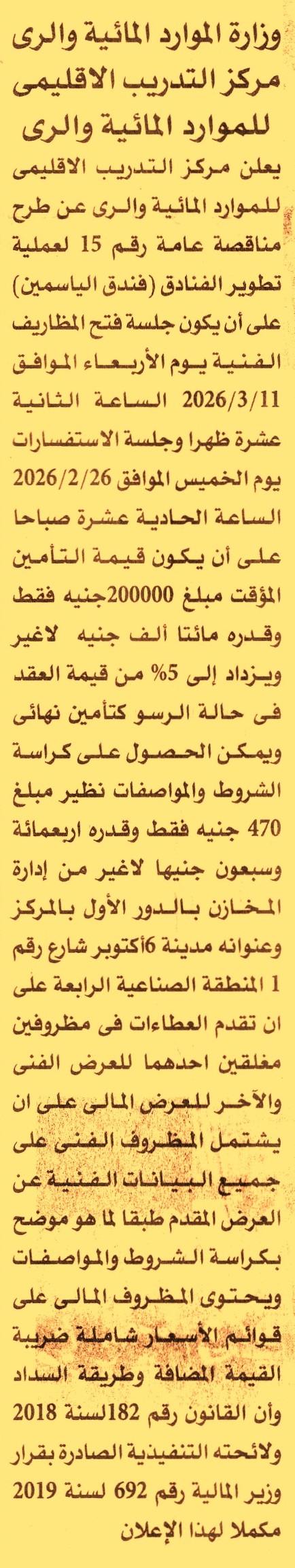مناقصة عامة رقم 15 لعملية