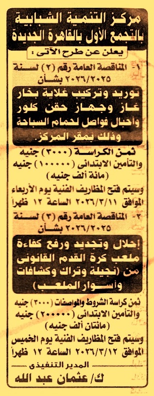 HOT Information مناقصة عامة رقم 2/2025/2026 لعملية توريد وتركيب غلاية بخار غاز وجهاز حقن كلور وأحبال فواصل لحمام السباحة عن جريدة الأخبار Post navigation بنك مصر مديرية الشئون الصحية بالغربية