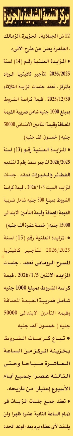 مزايدة علنية رقم 14/2025/2026 لعملية