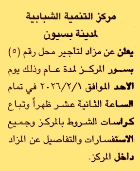 HOT Information مزايدة عامة لعملية تأجير المحل رقم 5 بسور المركز لمدة عام عن جريدة الجمهورية Post navigation مركز التنمية الشبابية بالفرافرة جهاز تنمية مدينة حدائق أكتوبر