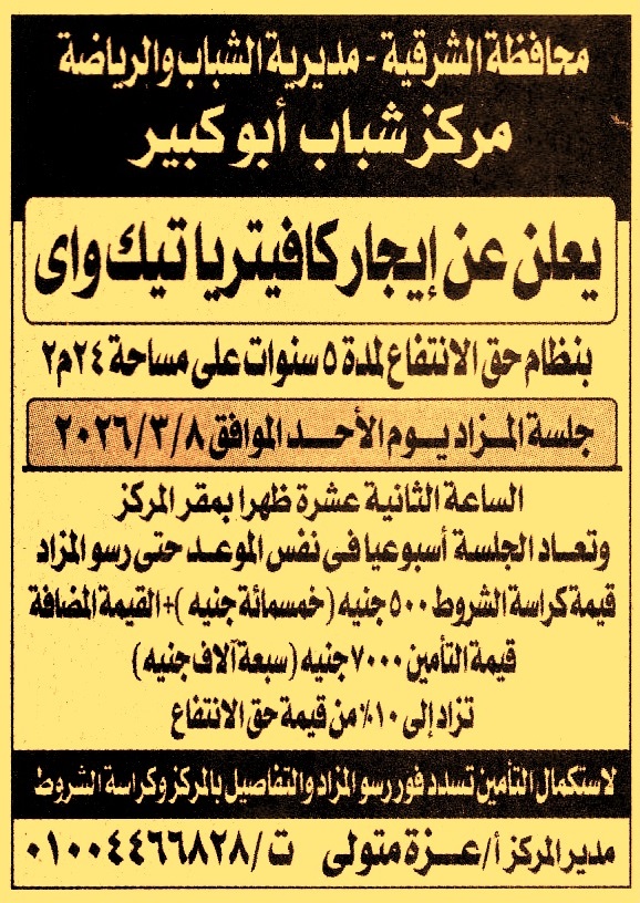 تأجير كافتيريا تيك اواي بمساحة 24م2