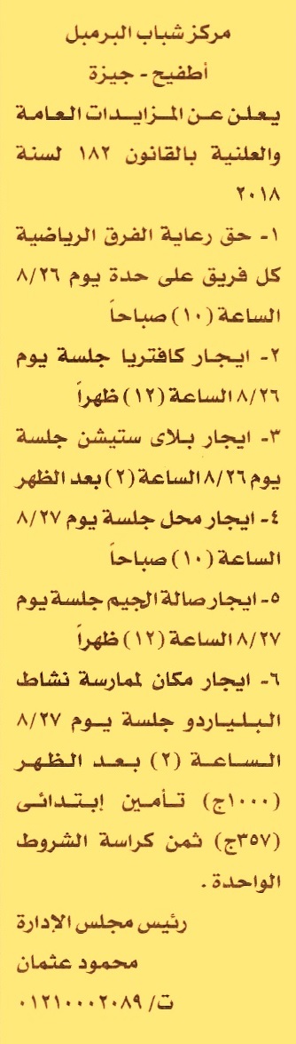 HOT Information مزايدة علنية عامة لعملية حق رعاية الفرق الرياضية كل فريق على حدة عن جريدة الأخبار Post navigation وزارة الموارد المائية والري شركة بيوت الأزياء الراقية