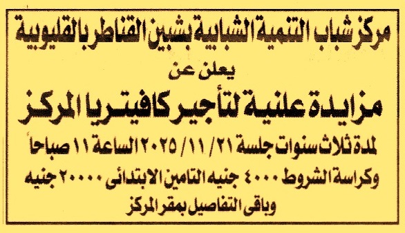 HOT Information مزايدة علنية لعملية تأجير كافتيريا المركز لمدة 3 سنوات عن جريدة الجمهورية Post navigation شركة النصر لصناعة الزجاج والبللور جهاز شئون البيئة