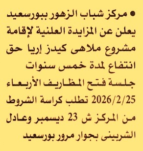 HOT Information مزايدة علنية لعملية إقامة مشروع ملاهي كيدز إريا بنظام حق الإنتفاع لمدة 5 سنوات عن جريدة الجمهورية Post navigation مركز شباب سنهرة محافظة أسيوط