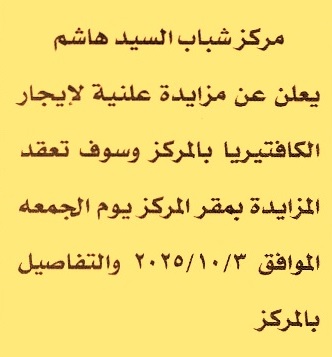 HOT Information مزايدة علنية لعملية تأجير الكافتيريا بالمركز عن جريدة الأخبار Post navigation بنك مصر مركز التنمية الشبابية بزينهم