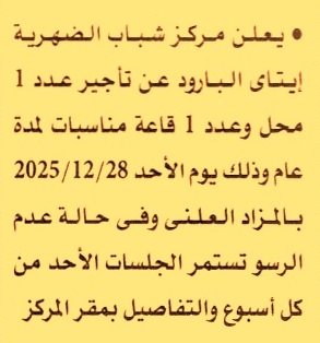 HOT Information مزايدة علنية لعملية تأجير عدد 1 محل وعدد 1 قاعة مناسبات لمدة عام (تعاد الجلسة أسبوعيا حتى إتمام الرسو) عن جريدة الأهرام Post navigation مؤسسة مستشفى أورام الأطفال 57357 الهيئة العامة للمنطقة الاقتصادية لقناة السويس
