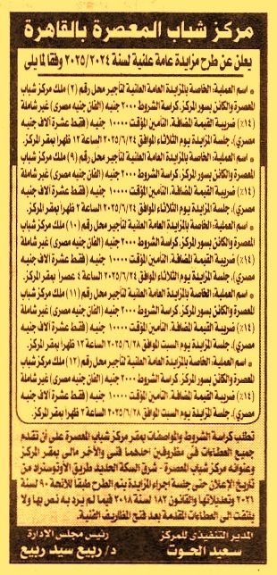 HOT Information مزايدة علنية عامة لعملية تأجير محل رقم 2 بسور المركز عن جريدة الأخبار Post navigation شركة غرب الدلتا لإنتاج الكهرباء الإدارة العامة لصرف شرق المنوفية