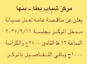 HOT Information مناقصة عامة لعملية صيانة مدخل المركز عن جريدة الجمهورية Post navigation هيئة النقل العام بالقاهرة مركز شباب منشية عبد اللطيف بكفر صقر