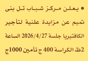HOT Information مزايدة علنية لعملية تأجير الكافتيريا عن جريدة الأهرام Post navigation الشركة المصرية لإنتاج الأمصال واللقاحات والأدوية مركز شباب اسنيت