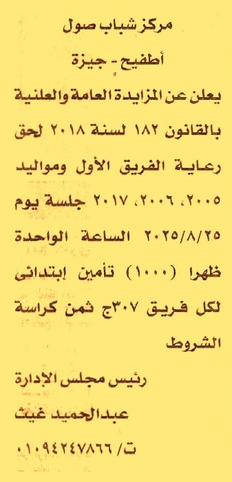 HOT Information مزايدة علنية عامة لعملية حق رعاية الفريق الأول ومواليد 2005, 2006, 2017 عن جريدة الأخبار Post navigation المركز الطبي للعاملين بقطاع البترول بالسويس بنك مصر