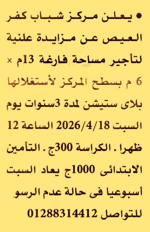 تأجير مساحة فارغة 13م×6م بسطح المركز لاستغلالها بلاي ستيشن لمدة 3 سنوات