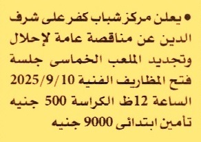 HOT Information مناقصة عامة لعملية إحلال وتجديد الملعب الخماسي عن جريدة الأهرام Post navigation حي غرب القاهرة شركة الوجه القبلي لإنتاج الكهرباء