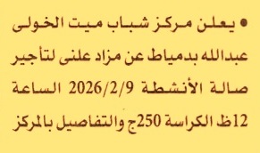 HOT Information مزايدة علنية لعملية تأجير صالة الأنشطة عن جريدة الأهرام Post navigation مركز شباب البرشا بملوي جهاز تنمية مدينة ناصر الجديدة