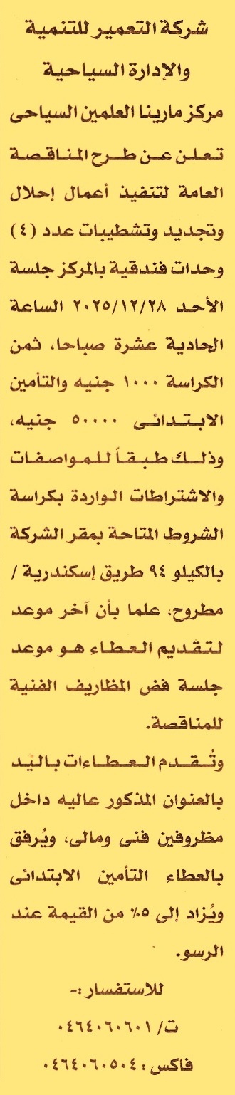 إحلال وتجديد وتشطيبات عدد 4 وحدات فندقية بالمركز