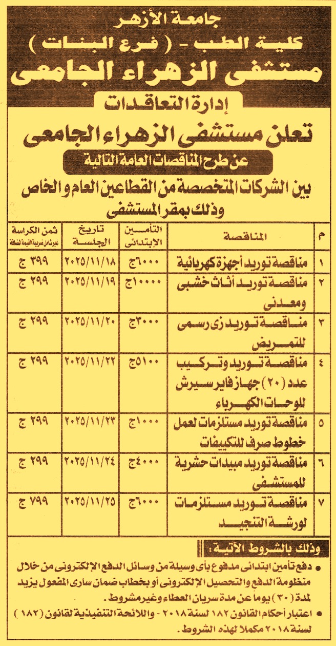HOT Information مناقصة عامة لعملية توريد أجهزة كهربائية (مدة سريان خطاب الضمان 30 يوم بعد سريان العطاءات) عن جريدة الجمهورية Post navigation جامعة طنطا رئاسة مركز ومدينة المنزلة
