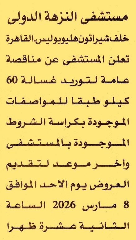 HOT information مناقصة عامة لعملية توريد غسالة 60 كيلو عن جريدة الأهرام Post navigation الشركة المصرية للمطارات جهاز تنمية مدينة 6 أكتوبر الجديدة